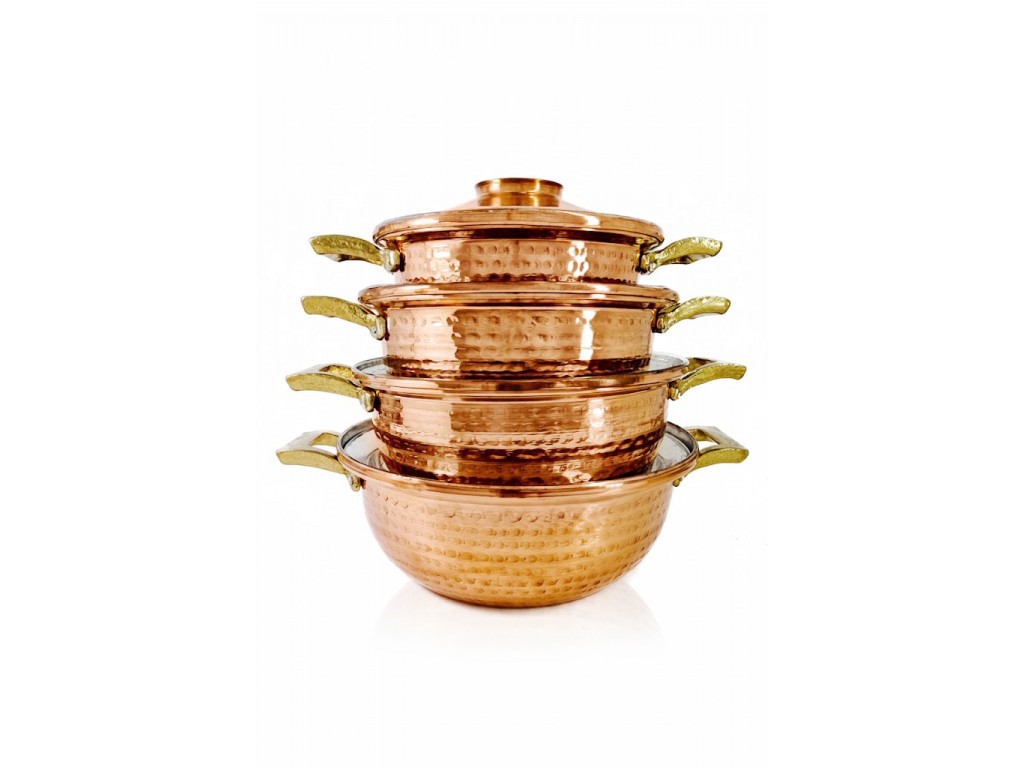 İç yüzey kalay kaplama olup gıda ile temasa uygundur, sağlıklıdır ve bakırın doğal pişirme avantajlarını güvenle kullanmanıza imkân tanır. Set, farklı boy tencerelerden oluşarak tüm yemek tariflerinde pratik kullanım sağlar. Düz ve dayanıklı tasarımıyla hem ev hem profesyonel mutfaklarda uzun ömürlü bir kullanım sunar.
